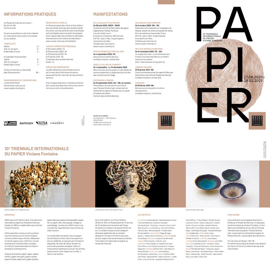 2020 signe la 10e édition de la Triennale internationale du papier, fondée en 1993 en collaboration avec l’artiste Viviane Fontaine.